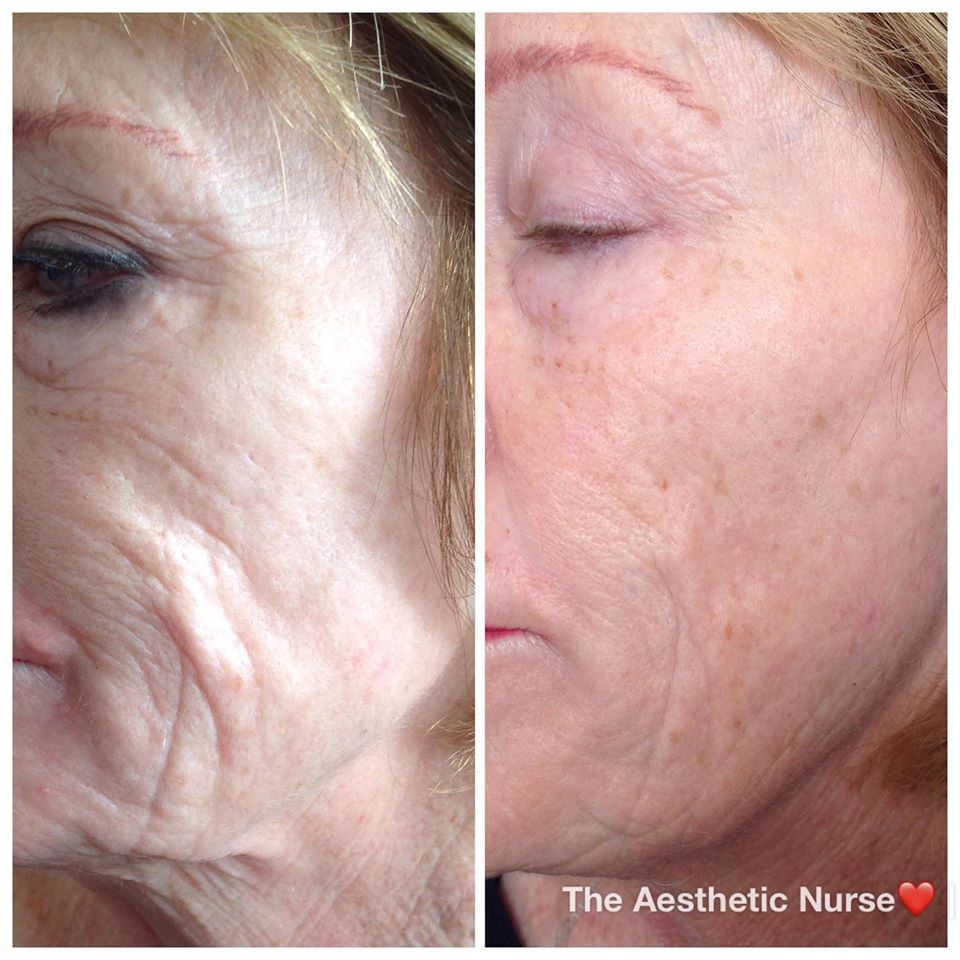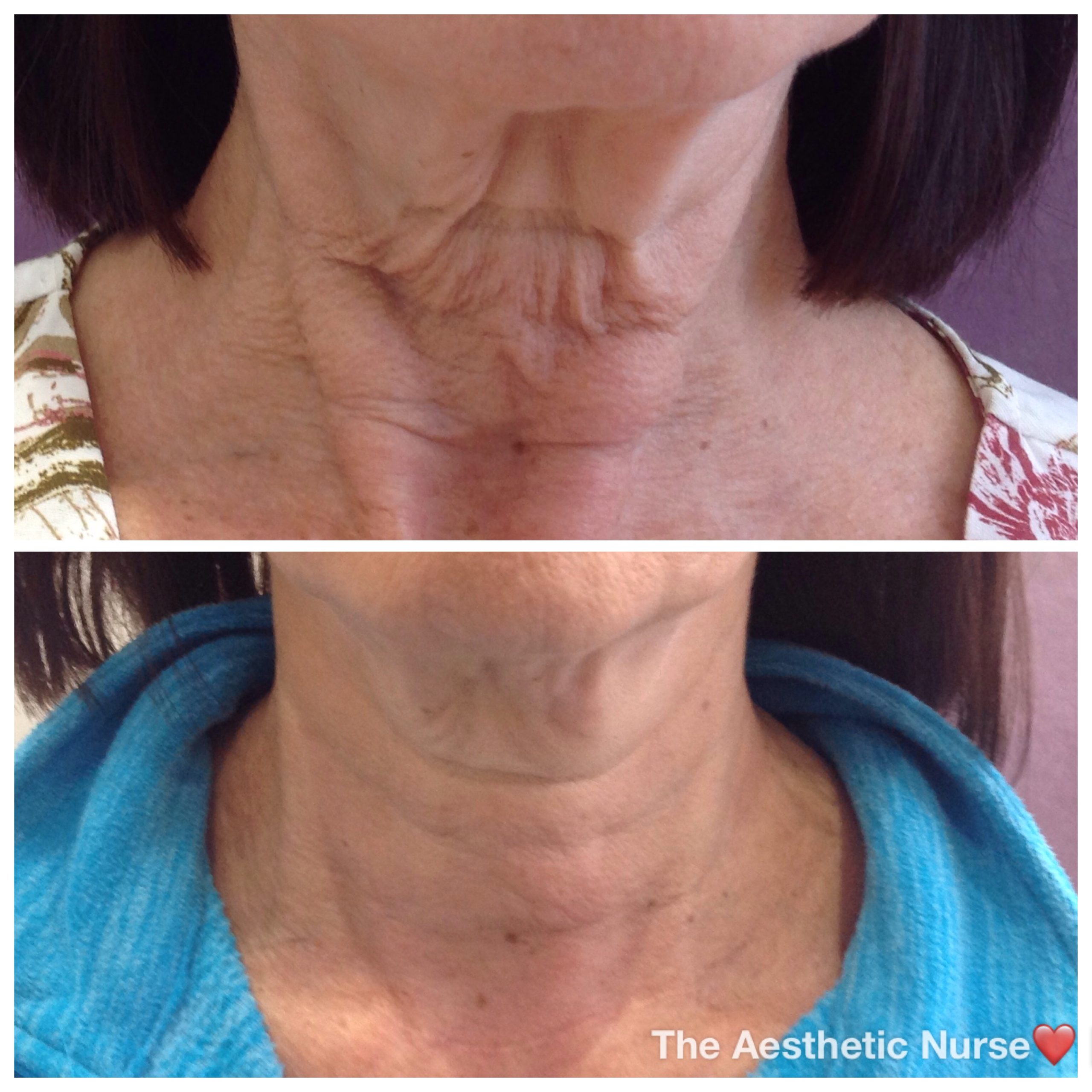 This is a new patient to Aesthetics and she had a small amount of Botox to her Glabella, she expressed her concerns regarding her neck. We use 2 treatments with Profhilo, enough said!