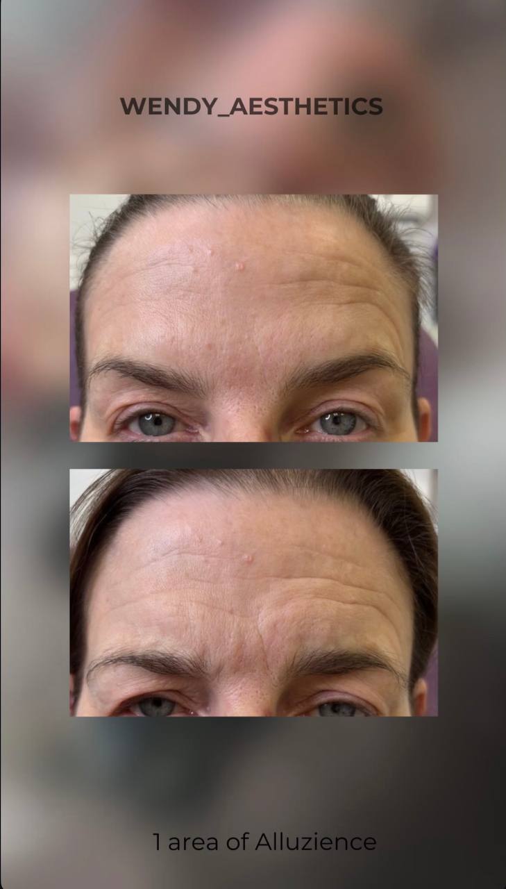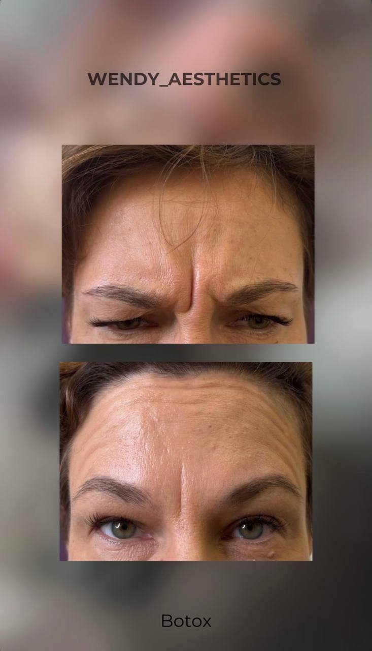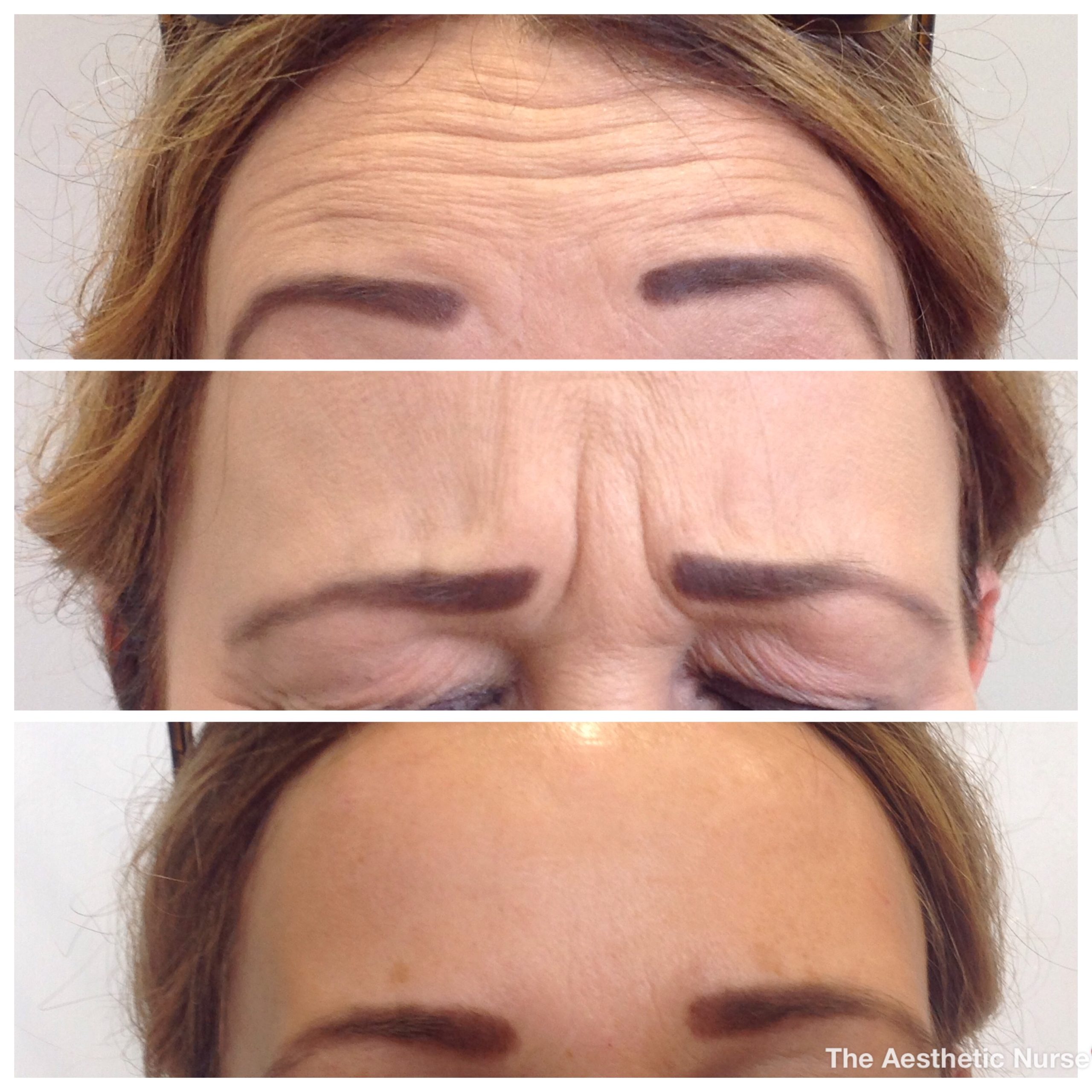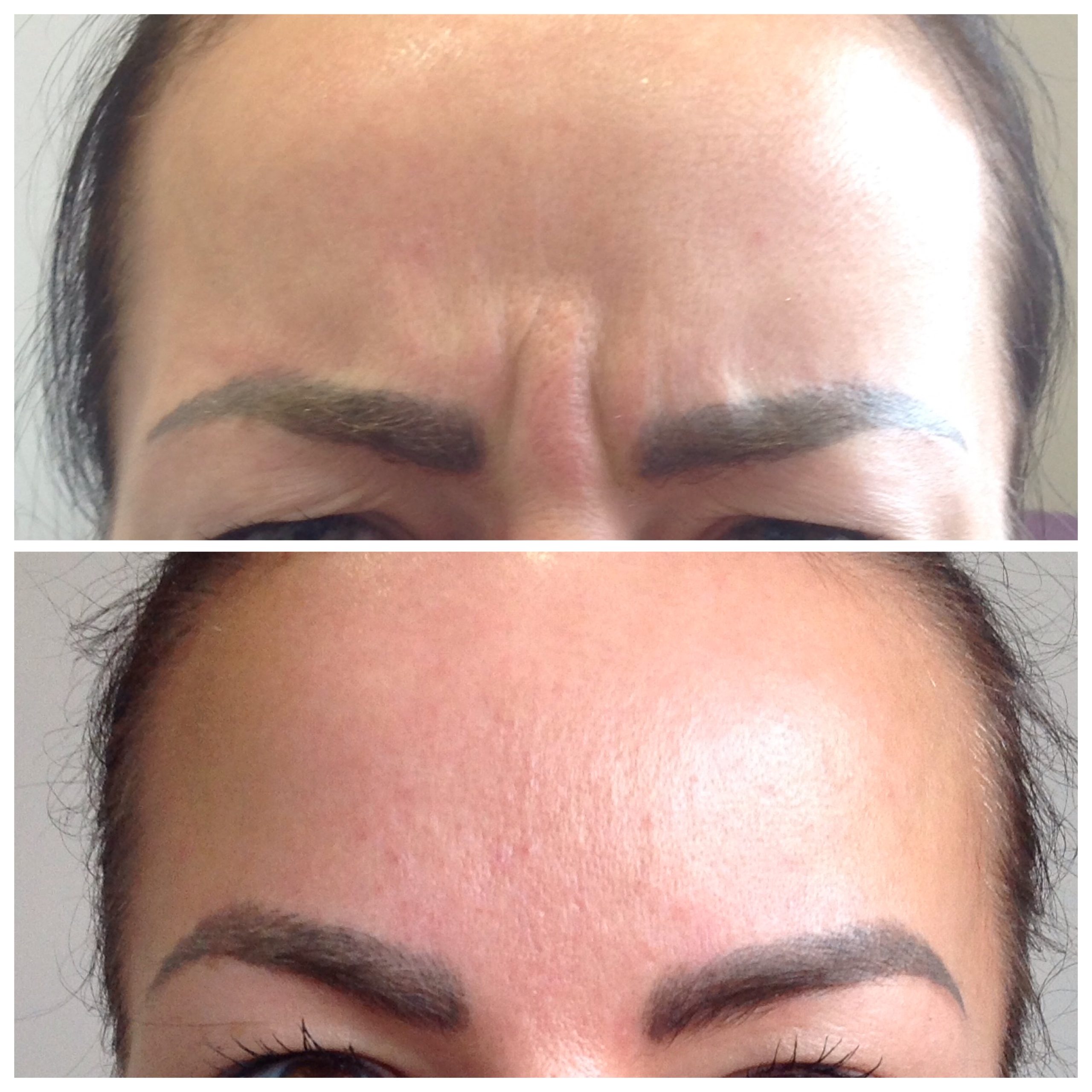 This is a new patient to toxin, a 42 year old lady, she had 2 areas of Allergans Botulinum Toxin Type A (Botox). I treated the Glabella & Frown lines with 46units in total.