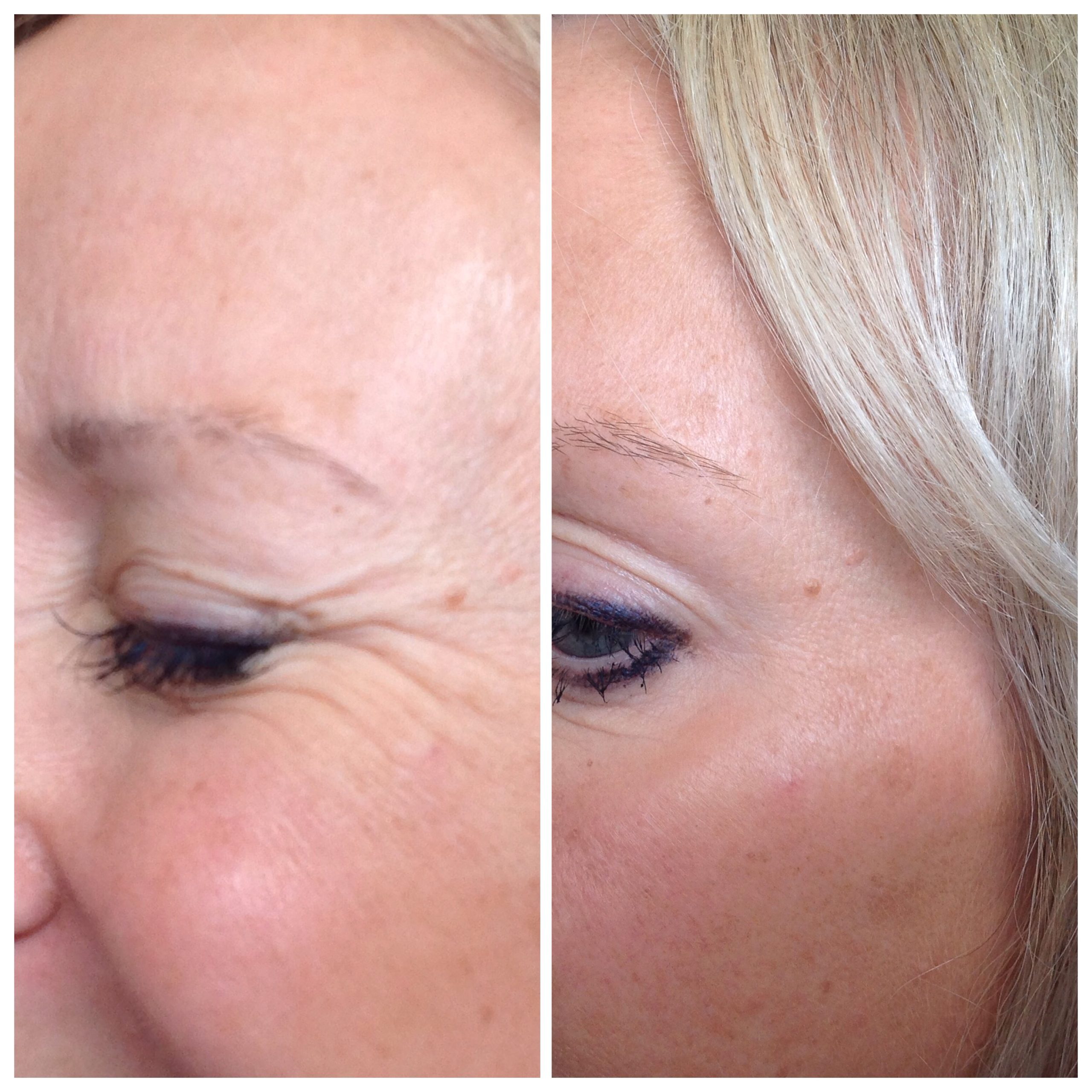 A 45 year old patient whom I have treated for approximately 7 years. She has had 2 areas treated with Allergan’s Botulinum Toxin Type A (Botox). I treated the Glabella & Frown lines with 46 units in total.