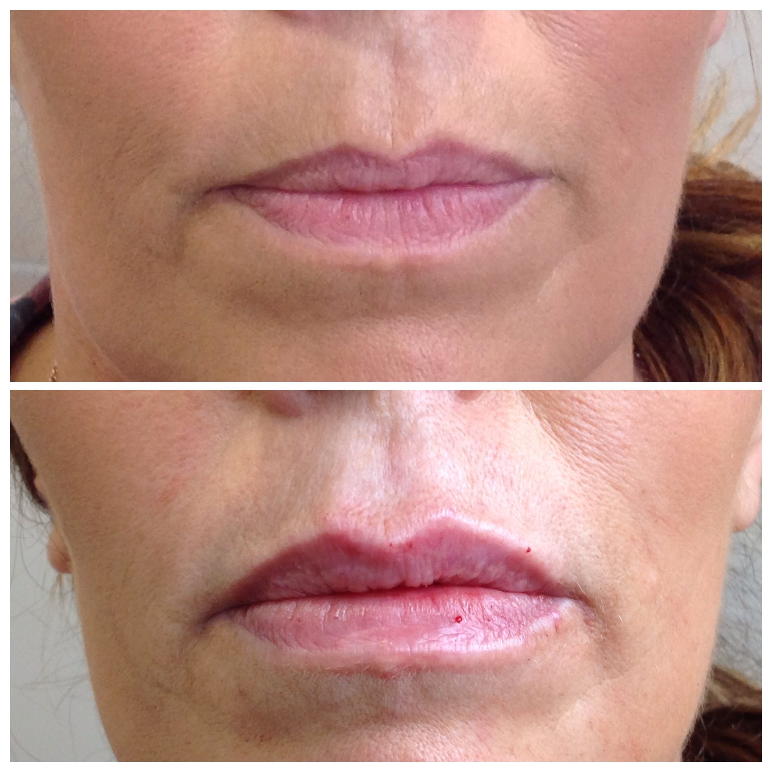 46 year old patient, freshly injected with 0.55mls of Juvederm Smile. Just to put back that plumpness she has lost with age.