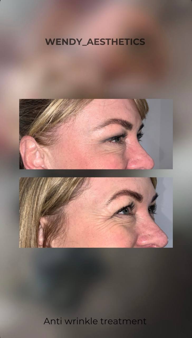 A 50 year old patient whom I have treated for approximately 3 years. She had 1 area of Allergans Botulinum Toxin Type A (Botox). I treated the Crows Feet lines with 20 units in total.